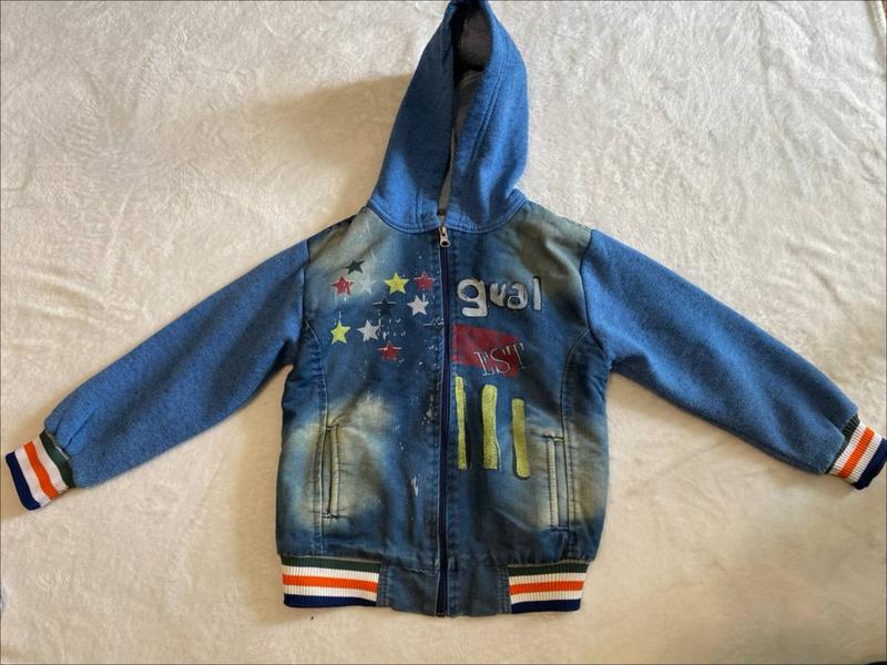 Теплая куртка-кофта в синем цвете Сезон осень/весна Размер 128 см Длина 46 см Длина рукава 39 см