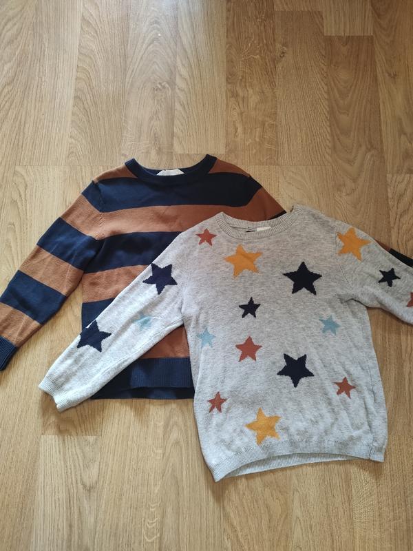 Кофты фирмы h&m, размер 98/104 (2-4 года) сине - корректная в полоску. Размер 98 2-3 года, серая в звездочку. В хорошем состоянии. Ціна за 2