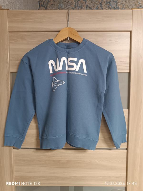 40 стильная хлопковая кофточка, сын одевал несколько раз, уже стала малая ему размер указан 134/140, смотрите замеры длина 51-52, плечи 46 спущенные, рукав 43.5, пог 42