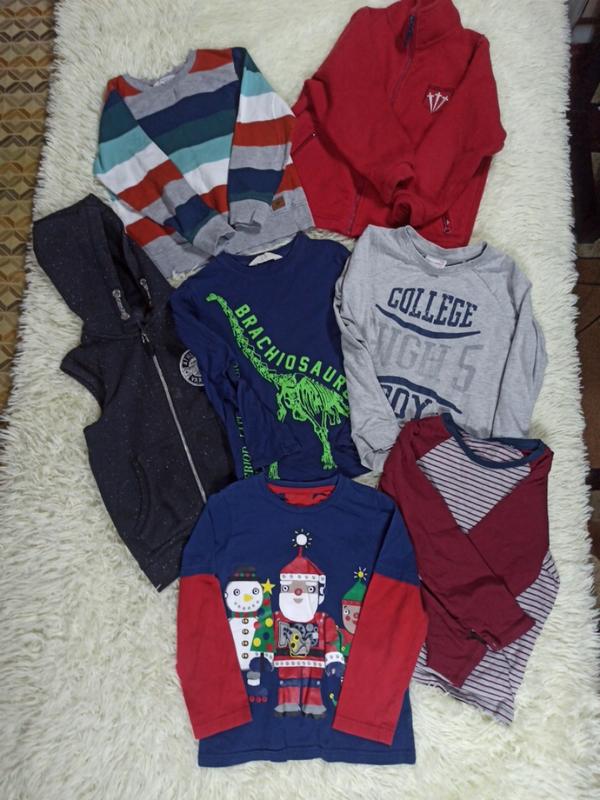 Комплект одежды мальчику 6-8 лет. Без нюансов 🥰 Красивые вещи отличного качества. Цена за все) флиска, свитер, трикотажная жилетка и 4 реглана. В подарок два штанишек для двора, если нужны) Смотрите объявления на этот возраст с комплектом штанишек) Купите и носите с удовольствием 🥰