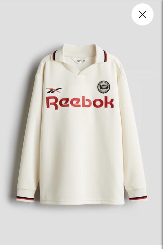 H&M x Reebok. Футболка з довгими рукавами з щільного трикотажу з легким блиском та різноманітними мотивами спереду та ззаду. V-подібний виріз та ребриста окантовка з акцентними кольоровими оздобленнями на комірі та манжетах. Склад: 100% поліестер