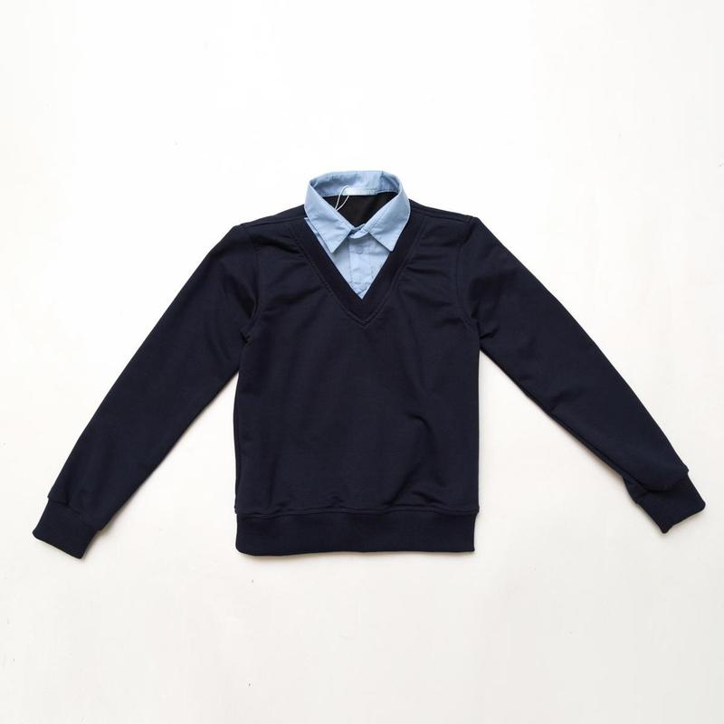 Кофта с имитацией рубашки для мальчика Двухнитка хорошего качества - не теряет цвет, не кашлатится, держит форму. Состав ткани - 75% бавовни 25% п/е. Цвета: темно-синий с голубым, черный с белым. Размеры: 122, 128, 134, 140, 146