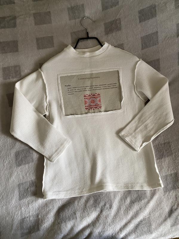 Світшот з українськими мотивами. В ідеальному стані, одягали на святкові заходи в школу, український бренд German, виглядає дуже стильно. На 9-10 років Довжина 63 Ширина47 Рукав 64