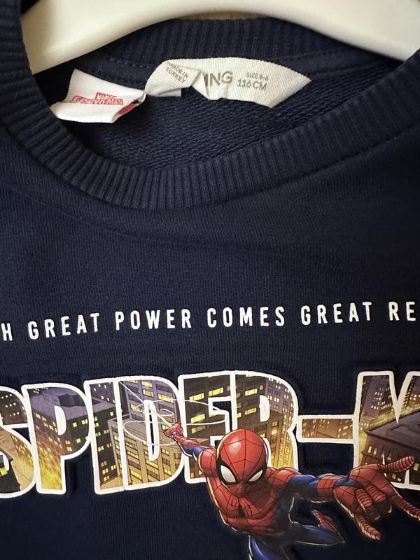 Кофта світшот для хлопчика Spiderman Mango Розмір 116 (5-6 років) Одягався кілька разів Довжина по спинці 40 Рукав (з манжетом) від плеча 31 + плече 13 Ширина по грудях 37