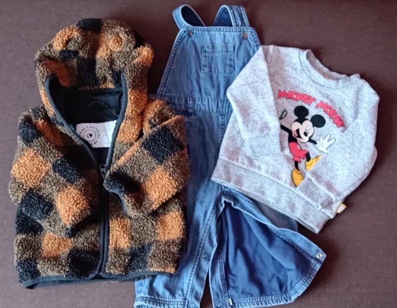 Фірмові дитячі речі лотом, розмір 9-12 міс.,стан нового та ідеальний,в склад входить кардиган на змійці, кофта фліс, комбенізон джинсовий на підкладці, додаткова інформація по запиту