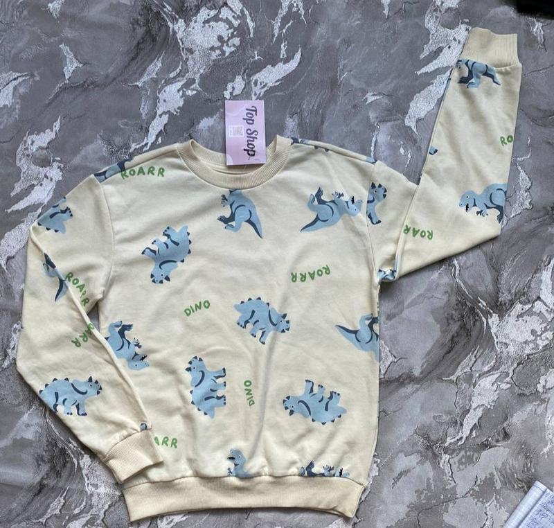 батник для мальчиков двухнитка хорошее качество принт динозавров замеры длиннее.50 см, пог 43 см,рукав от плеча 51 см, рост 140 см смга возраст 10-11р.