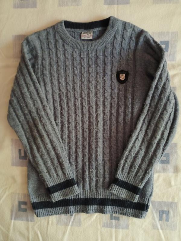 Светр-9-10 років,в нормальному стані,є катишки.Носили в школу,тепленька. Довжина по спинці-51см.плечі-31см,рукав від плеча-38см.під пахвами-39см.