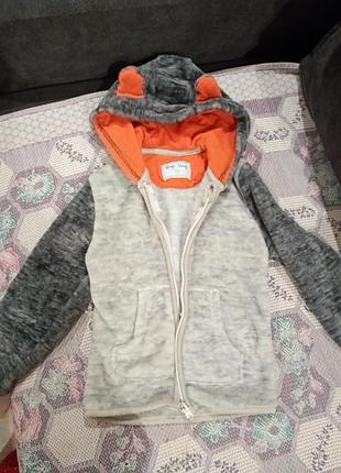 Стильная плюшевая кофта на молнии с ушками, рукав 40 см, длина 42 см