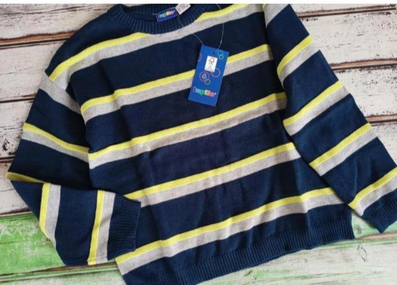 Свитерок для мальчиков от бренда Lupilu. С овальным вырезом и приспущенными плечами. Эластичная резинка на манжетах горловины, рукавах и по нижнему краю. Размер 110/116 Пог 37 Рукав от горловины 48см.