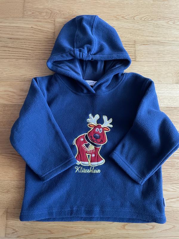 Мягкая флисовая кофта насыщенного синего цвета с яркой новогодней нашивкой – милый олень. Очень тёплая и удобная, подойдёт для прохладной погоды или как дополнительный слой под верхнюю одежду.