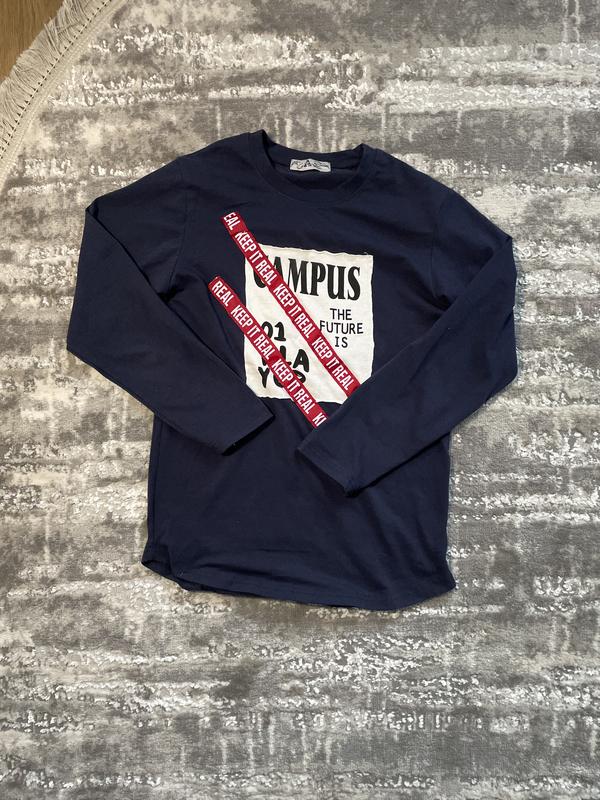 Синій лонгслів campus з принтом