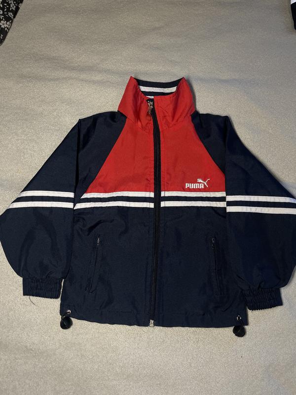 Вітровка спортивна кофта пума Розмір вказано на 92см Заміри Довжина спереду 36см/ззаду 39см Пог 33см Фосон спущений рукав Довжина рукава з під низу 31/від горловини 44см Ширина по низу 33см