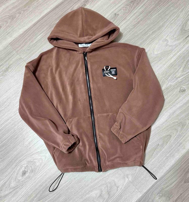 Тепла флісова кофта з капюшоном. Знизу стягується куліскою. Тканина - фліс полар, щільність - 450. Розмір 146-164