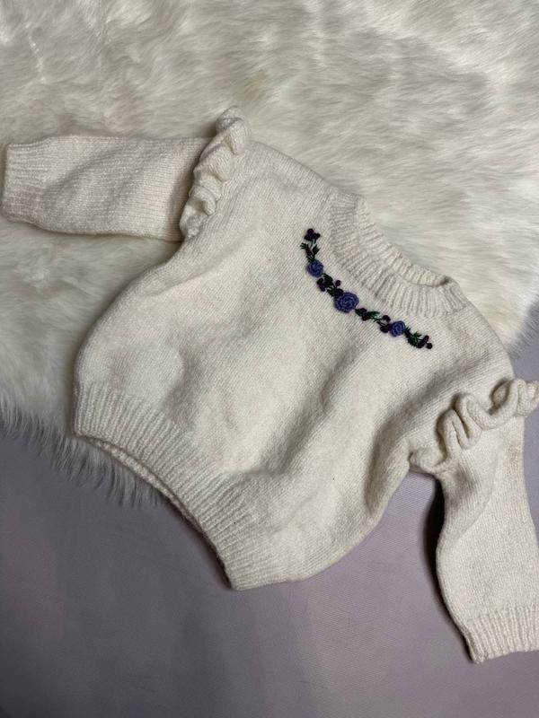 Вʼязана кофтинка Стан: нова Розмір: приблизно на 1,5-2 роки Від плеча до плеча 37 Напівобхват груди 33 Рукав 23 Довжина по спинці 31,5
