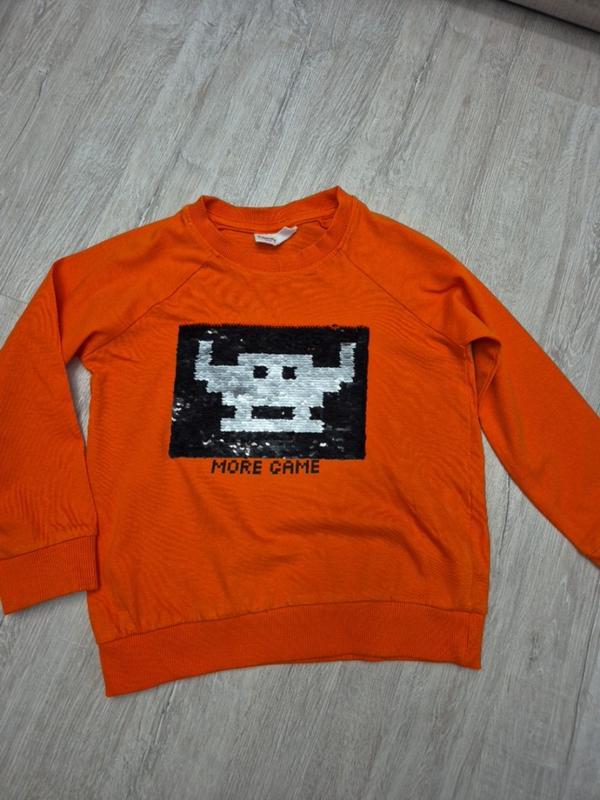 реглан на мальчика, оранжевый, рисунок с пайетками, состояние нового, без дефектов, замеры на фото, очень прикольный и качественный.