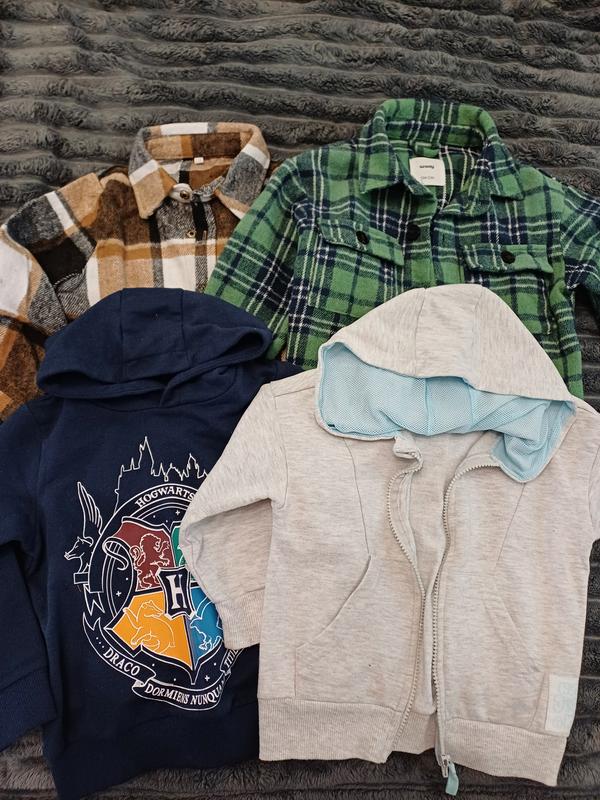 Одежда на мальчика 104 Размер 1. Худи Гарри Поттер - новая / 104 размер - Цена 180 грн. 2. Реглан серый - в идеальном состоянии/104 Размер - Цена 150 грн. 3. Утепленная рубашка коричневая - новая (не подойти размер)/ по факту 104 размер - Цена 300 грн. 4. Рубашка утепленная зеленая - в идеальном состоянии/104. Можно носить как верхнюю одежду. Цена- 280 грн. Смотрите другие объявления