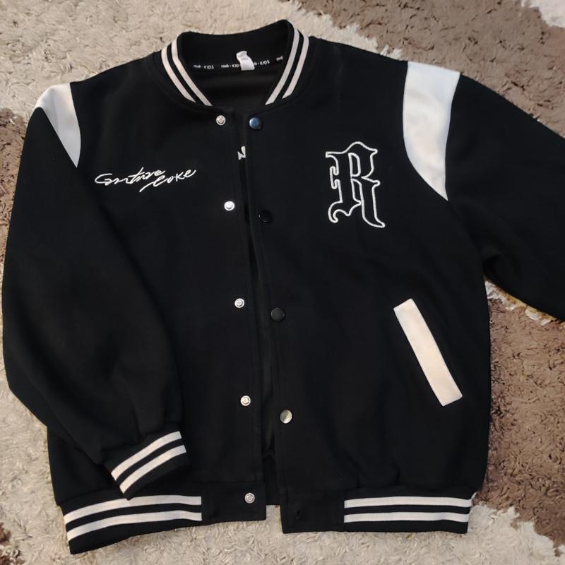 Бомбер приобретали ребенку в школу, но из-за карантина почти не ношена вещь. Изготовлен из качественного материала, не скатывается, фурнитура как новая, дефектов не имеет. Замеры: длина 53 см, ОГ в застегнутом виде 49 см, длина рукава от горла (спущенное плечо) 59 см. Отстираю по предоплате 150 грн. По дополнительной информации воспользуйтесь.