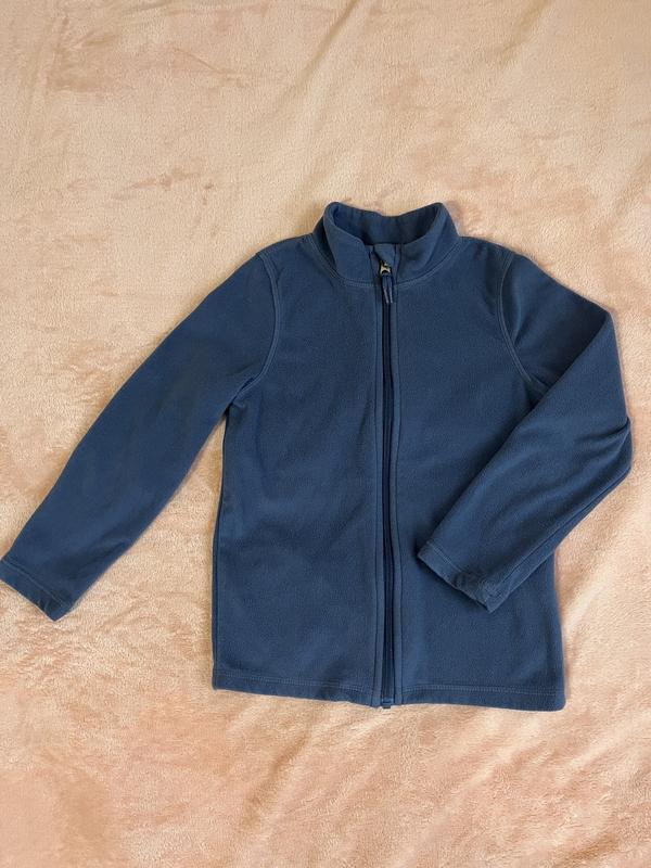 Флісова кофтинка на замку синього кольору. Фліс не товстий, тепла і зручна. Розмір 122/128. Довжина від плеча 46, рукав від плеча 43, напівобхват під руками 35