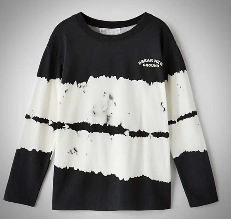 Стильна кофточка від ZARA, виконана в трендовому чорнобілому дизайні tie-dye з написом “BREAK NEW GROUND”. Фасон — long sleeve, довгий рукав, приємна до тіла бавовна 💯 📏 Замірювання: • Довжина — 54 см • Ширина — 43 см • Довжина рукава від плеча — 49 см 🔹 Розмір: 134 см (на 8–9 років) 🔹 Матеріал: 100% бавовна 🔹 Виробництво: Португалія 🇵🇹 🔹 Стан: нова, з біркою Ідеальна для школи чи прогулянок — поєднується з джинсами, шортами або спортивними штанами. Класна якість і сучасний вигляд 💥 ⚠️ Увага! Замовлення відправляю від мінімальної суми 200 грн. Будь ласка, враховуйте це під час оформлення покупки.