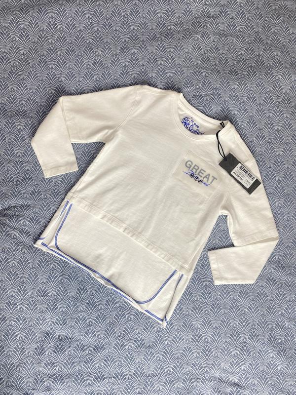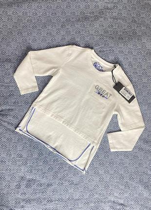 Біла кофта на хлопчика з пришивною кишенею, принтом на спині. Нова з магазину, переплутали розмір( Відправляю усіма доставками