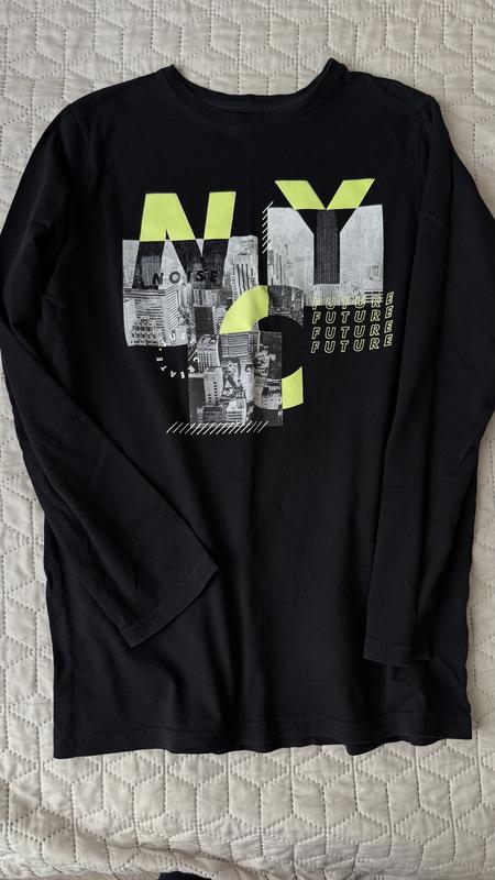 Хороший бавовняний лонгслів з принтом на ріст 164, якість чудова.