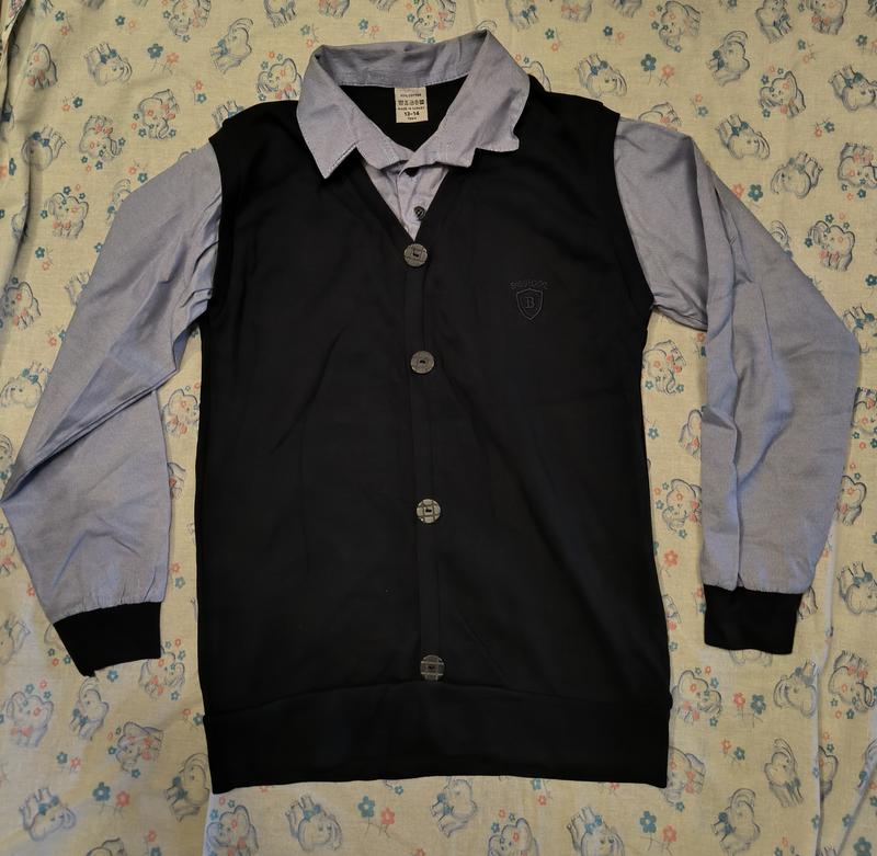 кофта-рубашка обманка, на мальчика. состояние идеальное, одевал один раз. надпись сбоку school по наборке 13-14 г., но будет ориентированно на 9-11 г., смотрите замеры