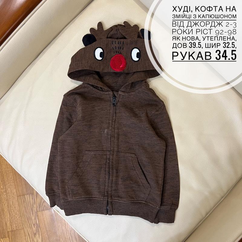 худі, кофта на змійці з капюшоном від Джордж 2-3 роки ріст 92-98 як нова, утеплена, дов 39.5, шир 32.5, рукав 34.5