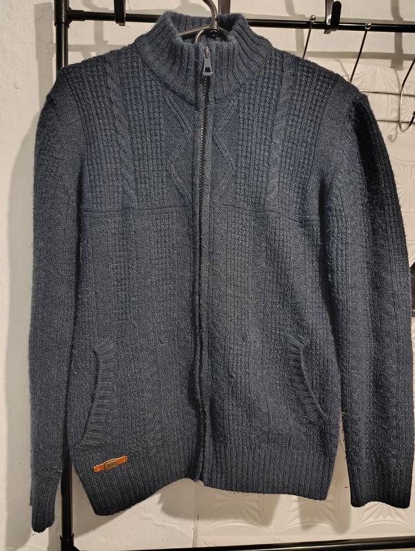 Теплая кофта на молнии для мальчика 8-12 лет. Рост 140 -158 см. Машинная вязка,шерсть. Есть карманы, горло стойка. Цвет синий темно, искажает камера. Замеры длина 63см, ширина 49см, рукав от горла 69см. Пересылаю.