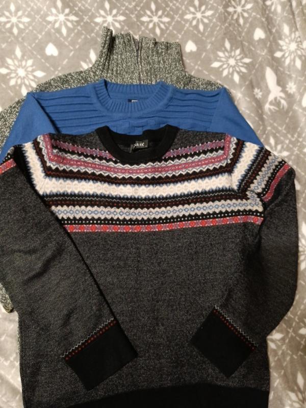 Пакет вещей мальчику на 11-13 лет, удивит замеры. Вещи как новые и качественные. В черных брюках есть утяжка на пуговицах, утепленные плотным наброском. Талия 32см.Стегна 41см. Длина 84см, по внутреннему шву 60см. Джинсы на широкой резинке, тонкие и мягкие к телу. Талия 29см,в растянутом состоянии 32см. Бедра 42см. Длина 84см, по внутреннему шву 60см Реглани. Темный с узором тонкая шерсть. По груди 40см.Довдина 54см. Длинна рукава от воротника 65см.Ширина низа 42см. Синий хлопок с акрилом,производитель Турция. Ширина по груди 42см. Длина 56см.Додина рукава от воротника 64см. Серый очень мягкий и комфортный. Ширина по грудях 45см. Длина молнии 19 см. Длина 52 см.Длина рукава 64 см от воротника.