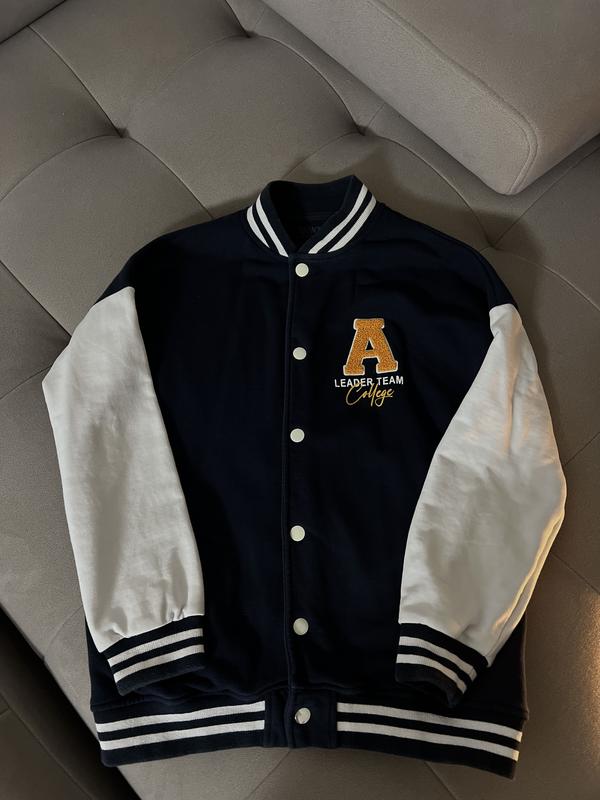📌 Toontoy бомбер Розмір: 128–134 (8–9 років) Стан: ідеальний, без дефектів Стильний темно-синій утеплений бомбер з білими рукавами. Теплий, м’який і дуже зручний. Якісні кнопки, приємна тканина, стильний вигляд. Підійде для школи, прогулянок чи на кожен день
