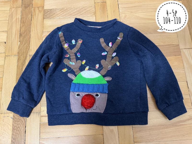 Кофтинка в новорічний Олень на 4-5років, 104-110см. На легенькому флісі. В ідеальному вигляді. Заміри при потребі надам. Дивіться інші мої оголошення