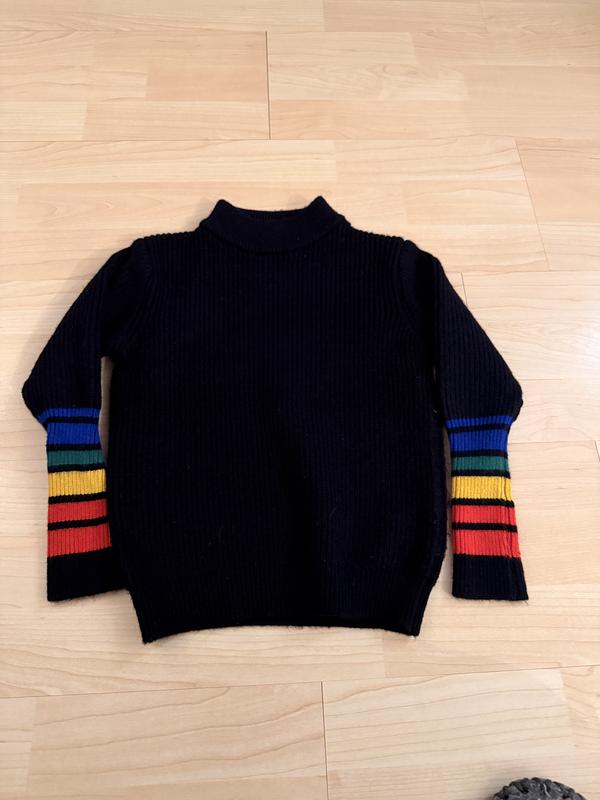 Джемпер дитячий Трикотаж Колір чорний По рукавах яскраві смужки Тканина приємна на дотик Теплий Дитині можна вдягати і в зиму і в холодну пору Якість СУПЕР Стан ІДЕАЛЬНИЙ
