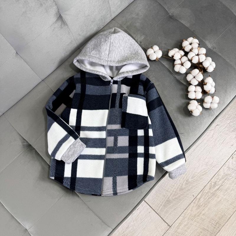 ❄️Кофта флисовая клетка, синяя. Ткань флис полар, трехнитка. Застежка на замочке. Капюшон - трехнитка на флисе. Производитель Украина 📐Замеры: 110 - длин. 41 / полуобхват. 36/ рукав 34