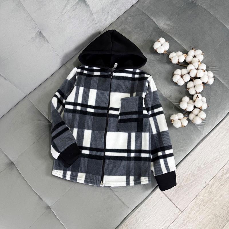 ❄️Кофта флисовая клетка, графит. Ткань флис полар, трехнитка. Застежка на замочке. Капюшон - трехнитка на флисе. Производитель Украина 📐Замеры: 158 - длин. 59/полуобхват. 46/ рукав 56