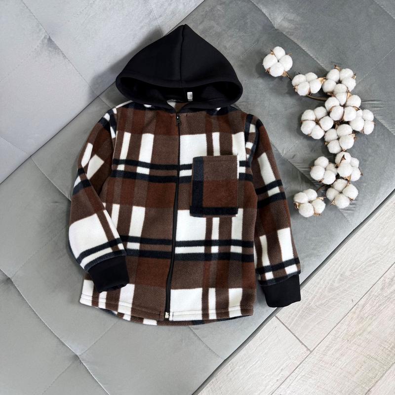 ❄️Кофта флисовая клетка, коричневая Ткань флис полар, трехнитка. Застежка на замочке. Капюшон - трехнитка на флисе. Производитель Украина 📐Замеры: 110 - длин. 43 / Полуобхват. 34/ рукав 40 🏷️ 555 грн 158 - длин. 58/полуобхват. 44/ рукав 56 🏷️ 690 грн