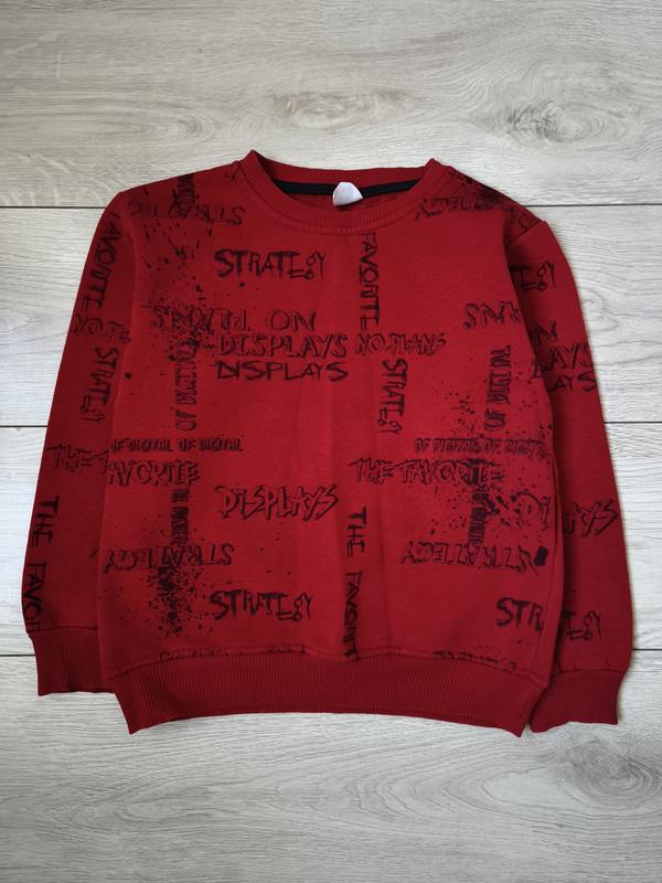 Хлопковая кофта с начесом. В идеальном состоянии. Упитанную цвет темно красный, не яркий. Майка в подарунок. Длина по спинке - 44см Рукав - 42см. Ширина под руками - 40см.