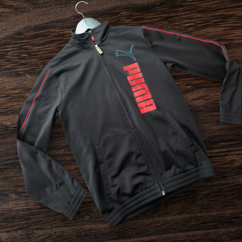 Олимпийка Puma в отличном состоянии. На ребенка 11-12 лет.Оригинал. Без пятен, дырок и потертостей. Ткань плотная, гладкая, хорошо держит форму. Молния исправная, манжеты и резинка цели. Аккуратно смотрится на теле. Подойдет для спорта и ежедневной носки. Стильный базовый вариант.