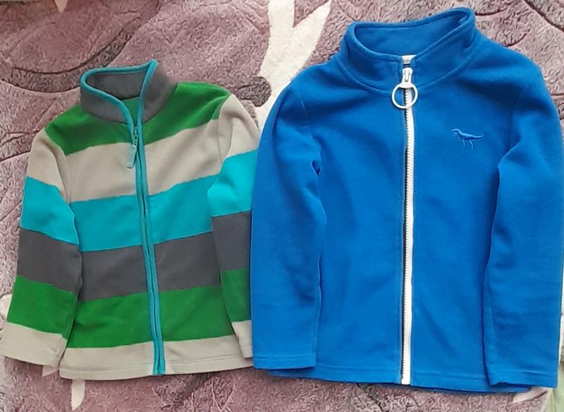 В хорошем состоянии. Утеплены флисом, удобные, легкие. В полоску на рост 104 см. Синяя на рост 110 см. Недостатки незначительные на фото (в полоску отсутствует один зубчик на молнии, но молния работает нормально и это незаметно визуально; синяя сзади внизу чуточку зашита это тоже практически незаметно). Стоимость при 2 130 грн.