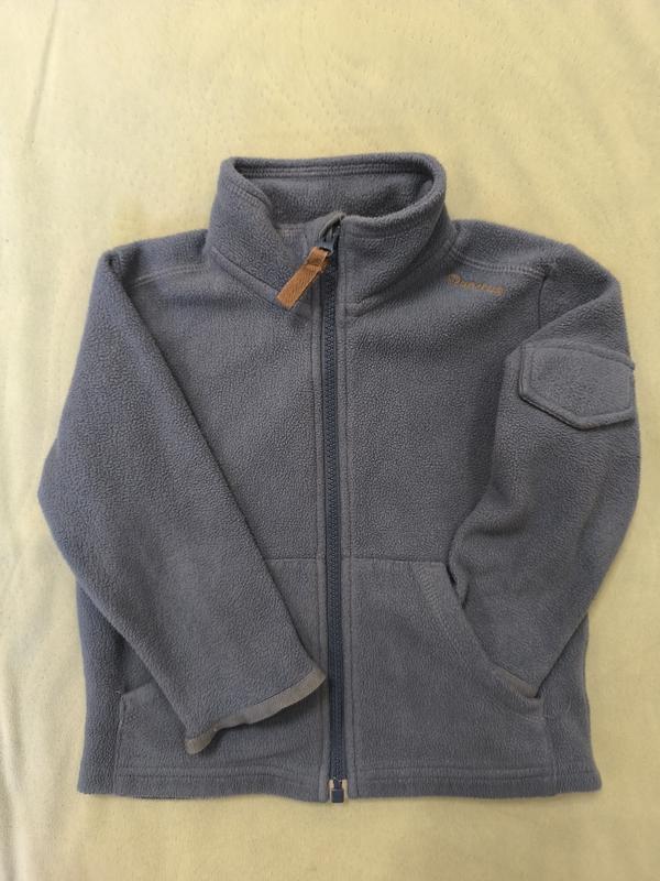 Продам детскую флисовую кофту темно-синего цвета от бренда Quechua. Высокий воротник для защиты шеи от ветра и накладной карман на рукаве. Идеально подходит в качестве «второго слоя» под куртку или как самостоятельная вещь для прогулок в прохладную погоду. Полноразмерная застежка-молния с удобным пуллером (подвеской на замке) коричневого цвета. Длина кофты - 36 см, длина рукава - 29 см.