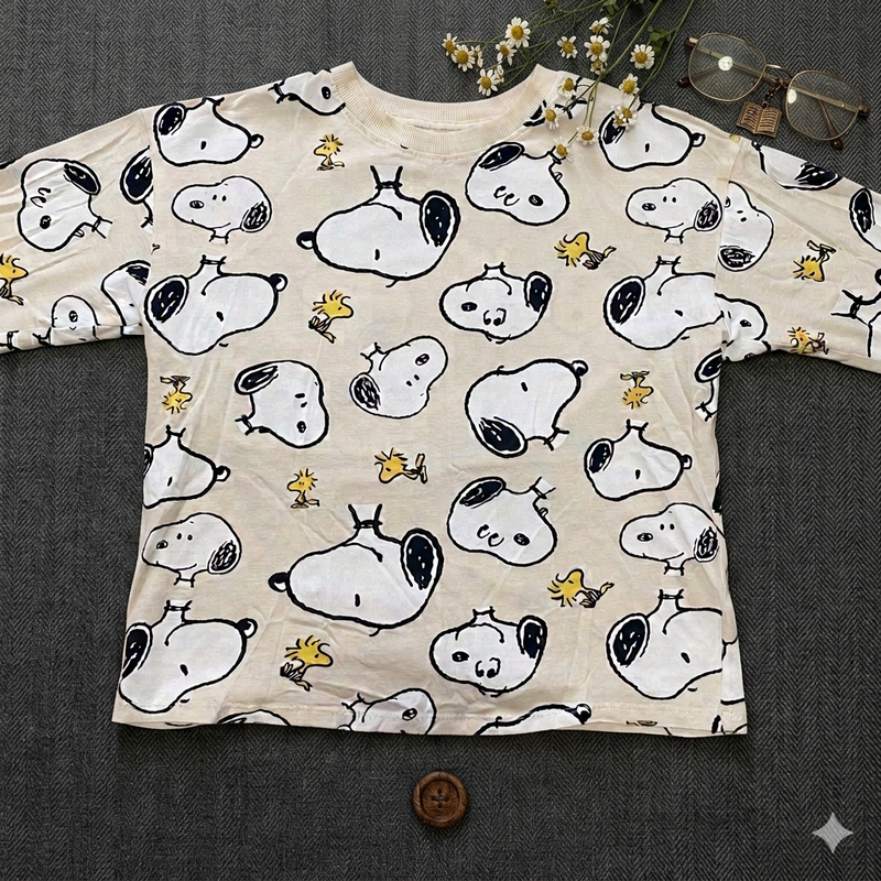 Стильный лонгслив / свитшот с принтом Snoopy (Peanuts) Обожаемый всеми персонаж Снупи на вашем ребенке! Очень милый и трендовый лонгслив, который легко сочетается с джинсами, джоггерами или шортами. Модель кроя оверсайз — выглядит современно и не стесняет движений.