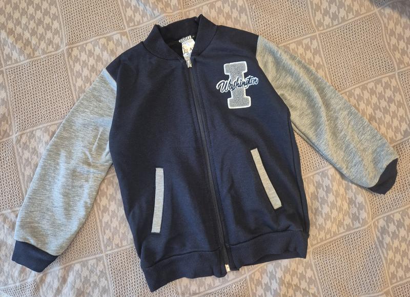 Кофта-бомбер на молнии, состояние идеальное. Тканина двонитка-петля. Размер по набору 6-7роков, но маломерит, на рост до 116.