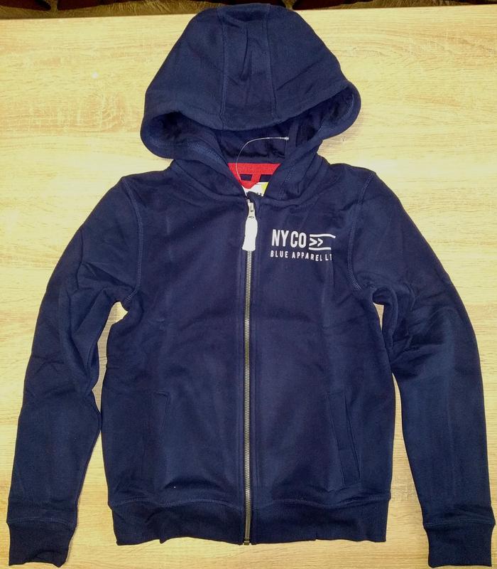 Спортивная кофта немецкой фирмы Pepperts. Ткань трехнитка с начесом. Состав ткани: 70% хлопка и 30 полиэстера. Размер 6-8 лет (122-128 см): Длина по спинке 45 см, длина рукава 46 см, плечи 32 см, ширина между подмышками 38 см, ширина по резинке внизу 31 см Размер 10-12 лет (146-152 см): Длина 53 см, длина рукава 57 см, плечи 35 см, ширина между подмышками 45 см, ширина по резинке внизу 39 см №4/2