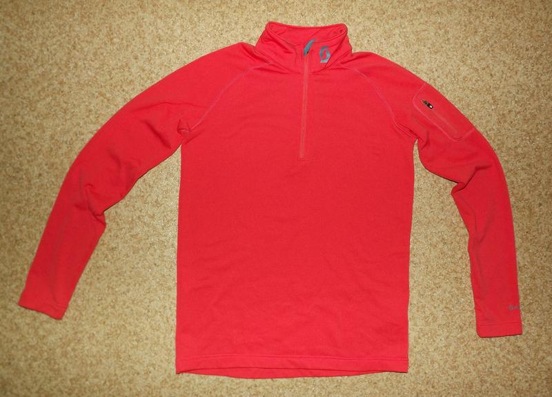 легкий свитер/кофта SCOTT Defined Light Junior с застежкой-молнией , незначительное б\у ( пару мелких затяжек), размер подростковый ХЛ, на рост 164 ( неплохо сядет на взрослый С-М. см. замеры). верх гладкий полиэстер, внутри флисовый начес . 92 полиэстер . 8 эластан. Свойства: Чрезвычайно воздухопроницаемый + карман на рукаве + защита подбородка от натирания Замеры подмышками - 46 см длина 66 см внутренний шов рукава- 52.5 см от рукава до воротника - 73.5 см