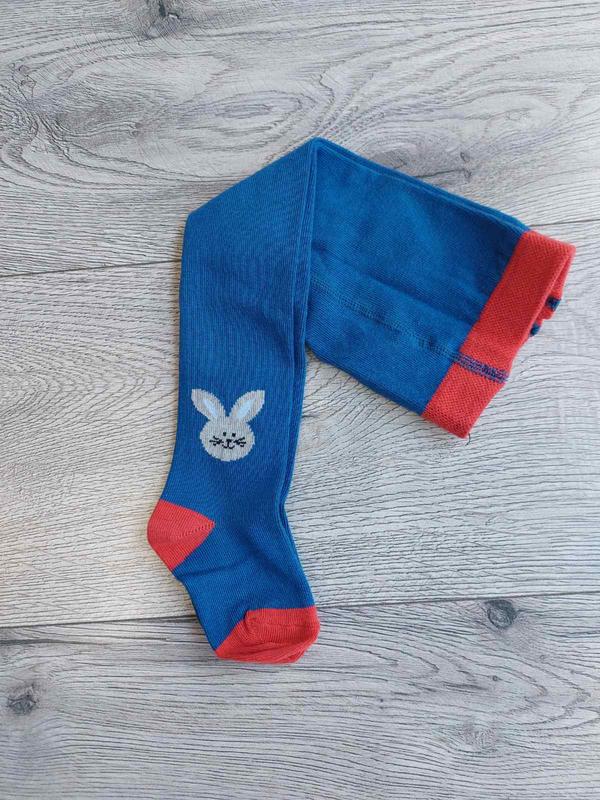 Колготы для самых маленьких, хлопковые, демисезонные. Синие с зайчиком. Размер: 68-74. Состав: 80% бавовна 18% полиамид 2% еластан