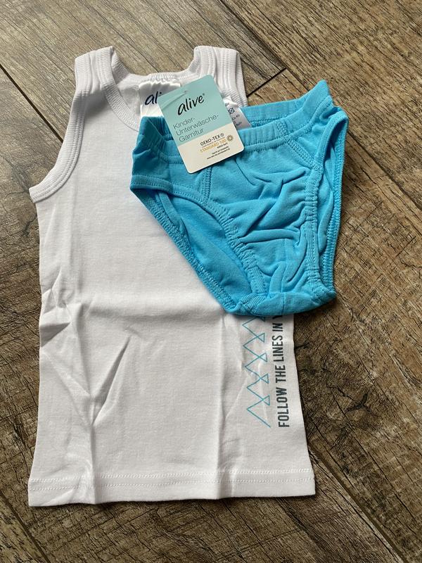 Отличный комплект майка у трусики на мальчика Alive Германия на размер 92(1-3года) Хлопковый комплект на мальчика Приятный к телу ,Мягкий трикотаж Комфортные при носке благодаря высокому содержанию хлопка Майка белая и плавки голубые Отличное немецкое качество!! Состав: 100%-хлопок Замеры майки : Длина- 38см ,ПОГ- 22см тянется до 35см Ширина по низу- 22см Замеры трусиков : Пояс- 18,5см тянется до 32см ПОБ- 21см тянется до 34см ,Длина с боку - 5см Длина в сложенном на пополам виде- 19см