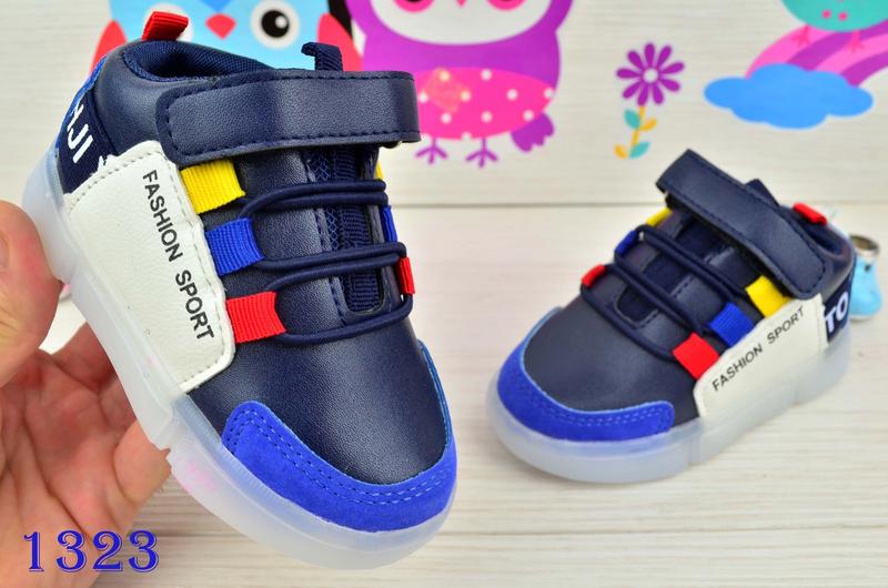 Код№1323 Кроссовки для мальчика (led подсветка ,батарейки) верх эко кожа стелька кожа+супинатор липучка+(шнурки-резинки) р-ры в наличии:(замеры стелек) 24-14,5см 24-14,5см