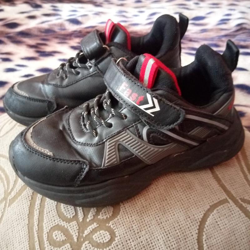Кроссовки на парня Легкие и удобные Еко кожа (заменители) и подошва пена Липучки хороши Состояние хорошее Стан на фото Потертости спереди Отсутствие стельки