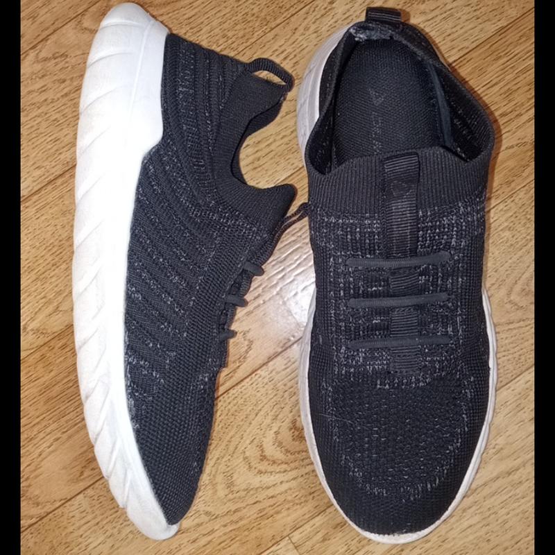 другие кросовки черного цвета с вставкой серой нитки.на верху сетка снизу подкладка.а так без подкладки.три толстые резинки вместо шнурков и вокруг ноги резинки.этикетка внутри.верх очень хороший+!. подошва нормально все.на хорошо размер-34. стелька-21 см.по плоскости.хотя она сама завернуть немного на пятку.если 33 размер это 19.5 см то 34 больше...