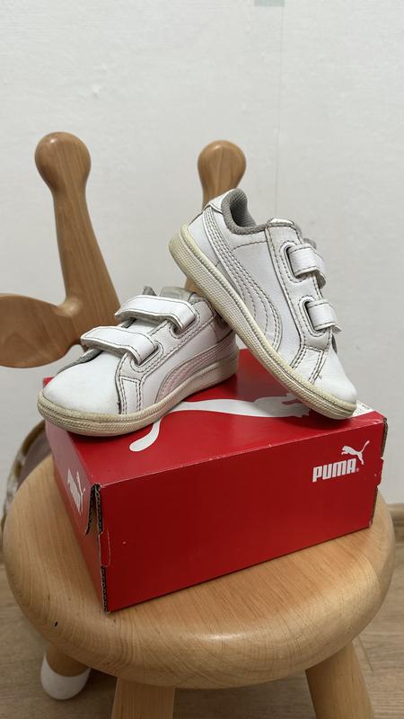 Кросівки PUMA 24 розмір 14 см устілка Всередині тканина, зовні шкіра. В гарному стані дивлячись на те що вони білі. Добре пасують до будь якого одягу. Ліпучки активні, дають змогу зручно та швидко взути дитину