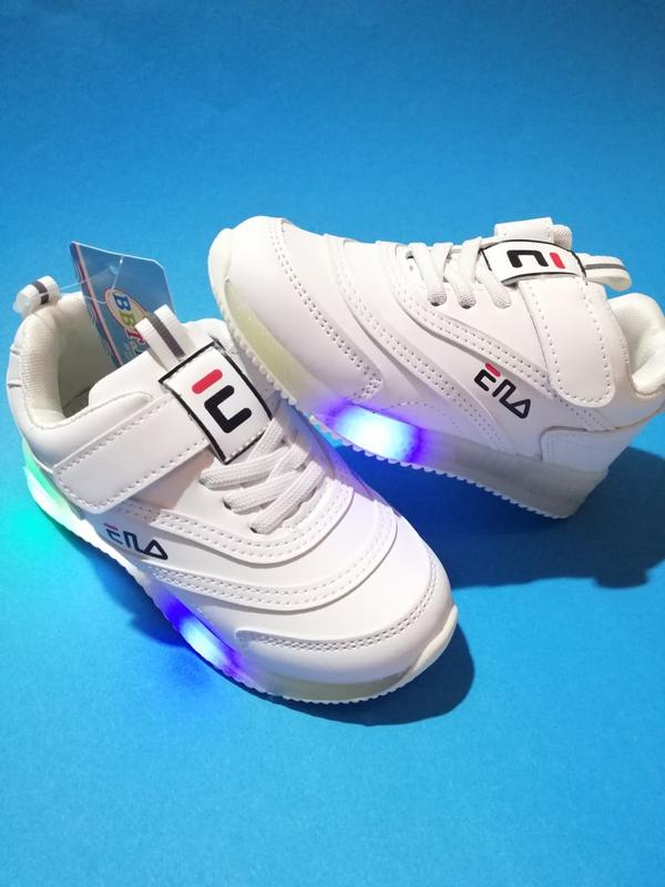 Белоснежные кроссовки унисекс фирмы BBT.KIDS. При ходьбе загораются фонарики стелька кожа+супинатор Очень лёгкие! 26-16 28-17,5 91#